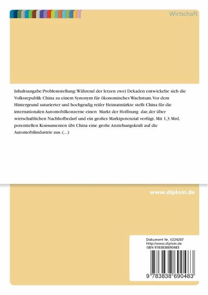 Während der letzen zwei Dekaden entwickelte sich die Volksrepublik China zu einem Synonym für ökonomisches Wachstum. Vor dem Hintergrund saturierter und hochgradig reifer Heimatmärkte stellt China für die internationalen Automobilkonzerne einen Markt der Hoffnung dar, der über wirtschaftlichen Nachholbedarf und ein großes Marktpotenzial verfügt. Mit 1,3 Mrd. potentiellen Konsumenten übt China eine große Anziehungskraft auf die Automobilindustrie aus.