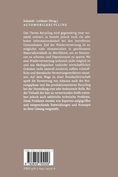 Das Thema Recycling wird gegenwärtig zwar verstärkt erörtert, es besteht jedoch noch ein sehr hoher Informationsbedarf bei den betroffenen Unternehmen. Ziel der Wiederverwertung ist es, möglichst viele Rohstoffe zurückzugewinnen, um so Ressourcen zu schonen und gleichzeitig die Anzahl und das Wachstum von Deponien zu vermindern. Auf dem Weg zu einer Kreislaufwirtschaft spielt die Verwertung von Altautos eine bedeutende Rolle. Bei der Vielzahl der zu verwertenden Stoffe entstehen jedoch auch zahlreiche technische Probleme. Diese Probleme werden hier jeweils von Experten aufgegriffen und entsprechende Lösungsvorschläge vorgestellt.