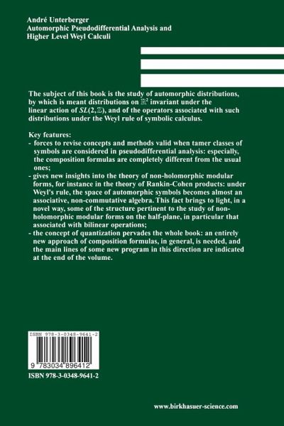 The subject of this book is the study of automorphic distributions, by which is meant distributions on R 2 invariant under the linear action of SL(2,Z), and of the operators associated with such distributions under the Weyl rule of symbolic calculus.