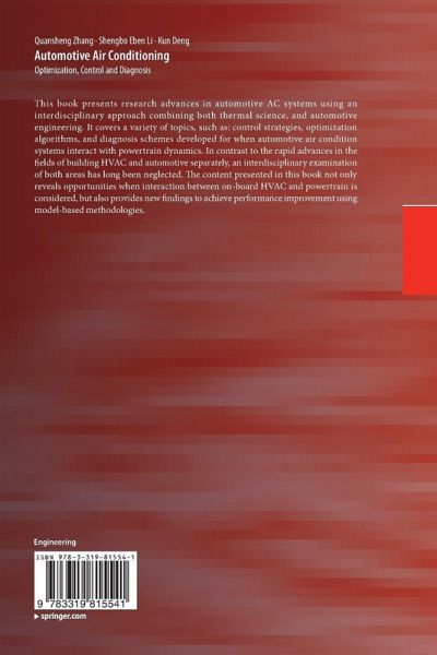 This book presents research advances in automotive AC systems using an interdisciplinary approach combining both thermal science, and automotive engineering. It covers a variety of topics, such as: control strategies, optimization algorithms, and diagnosis schemes developed for when automotive air condition systems interact with powertrain dynamics. In contrast to the rapid advances in the fields of building HVAC and automotive separately, an interdisciplinary examination of both areas has long been neglected. The content presented in this book not only reveals opportunities when interaction between on-board HVAC and powertrain is considered, but also provides new findings to achieve performance improvement using model-based methodologies.