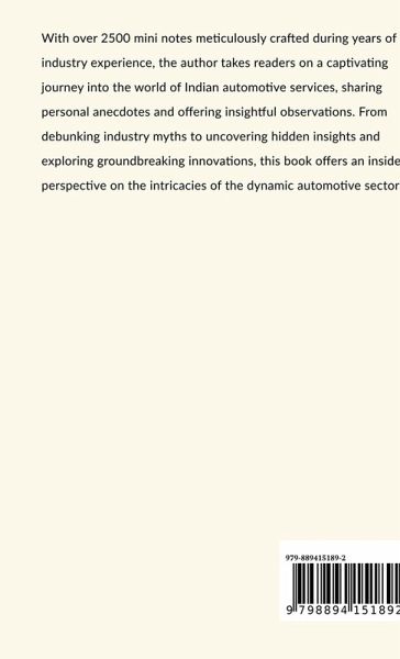 With over 2500 mini notes meticulously crafted during years of industry experience, the author takes readers on a captivating journey into the world of Indian automotive services, sharing personal anecdotes and offering insightful observations. From debunking industry myths to uncovering hidden insights and exploring groundbreaking innovations, this book offers an insider's perspective on the intricacies of the dynamic automotive sector.