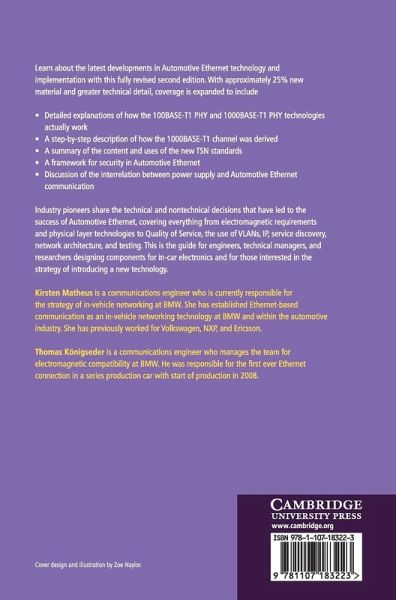 Learn about the latest developments in automotive Ethernet technology and implementation with this fully revised second edition. Including approximately twenty-five percent new material and greater technical detail, coverage is expanded to include: · Detailed explanations of how the 100BASE-T1 PHY and 1000 BASE-T1 PHY technologies actually work · A step-by-step description of how the 1000BASE-T1 channel was derived · A summary of the content and uses of the new TSN standards · A framework for security in Automotive Ethernet · Discussion of the interrelation between power supply and automotive Ethernet communication Industry pioneers share the technical and non-technical decisions that have led to the success of automotive Ethernet, covering everything from electromagnetic requirements and physical layer technologies, Quality of Service, the use of VLANs, IP and Service Discovery, and network architecture and testing. This is a guide for engineers, technical managers and researchers designing components for in-car electronics, and those interested in the strategy of introducing a new technology.