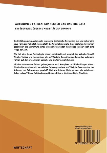 Die Einführung des Automobils löste eine technische Revolution aus und schuf eine neue Form der Mobilität. Heute steht die Automobilbranche ihrer nächsten Revolution gegenüber: die Einführung eines autonom fahrenden Fahrzeugs ist nur noch eine Frage der Zeit.Wie hat sich diese Technologie bisher entwickelt und was ist der aktuelle Stand? Welche Treiber und Hemmnisse gibt es? Welche Auswirkungen kann das autonome Fahren auf den öffentlichen Verkehr und die Wirtschaft haben?Mit dem autonomen Fahren gehen jedoch auch komplexe rechtliche Fragen einher. Welche Daten erhebt ein vernetztes Fahrzeug und warum? Welche Grenzen sind der Nutzung von Fahrerdaten gesetzt? Und wie können Unternehmen die erhobenen Daten nutzen? Diese Publikation wirft einen Blick in die Zukunft der Mobilität.Aus dem Inhalt:- Verkehr;- Connected Car;- Automobilindustrie;- Zentrales Fahrerassistenzsystem;- Big Data