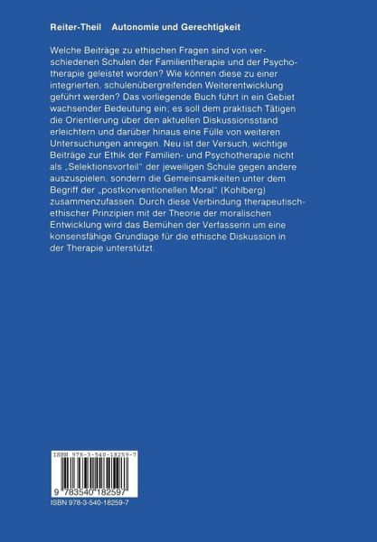 1 Eine ganz persönliche Einleitung.- 1.1 Wie ich zu diesem Thema gekommen bin.- 1.2 Schwierigkeiten mit dem Thema.- 1.3 Die besondere Bedeutung der Familientherapie.- 1.4 Einige Hinweise zur Gliederung der Arbeit.- 2 Probleme der Ethik im therapeutischen Kontext.- 2.1 Was soll eine Ethik im Hinblick auf die Therapie leisten?.- 2.2 Vom Ethiker im therapeutischen Kontext zum ethischen Therapeuten.- 2.3 Das Problem der Rechtfertigung moralischer Normen und Werte.- 3 Die wissenschaftstheoretische Einordnung der - systemorientierten - Familientherapie.- 3.1 Die Klassifikation familientherapeutischer Schulen nach Levant.- 3.2 Die "Paradigmadiskussion" um die Familientherapie.- 3.3 Konsequenzen: Pluralismus und Integration.- 4 Systematisierung ethischer Fragen in der Familientherapie.- 4.1 "Quellen" ethischer Konflikte in der Familientherapie. Ergebnisse einer Befragung.- 4.2 Qualitative Aspekte.- 4.3 Quantitative Aspekte.- 4.4 Hierarchische Aspekte.- 5 Empirische Arbeiten zu Wertfragen in der Psychotherapie.- 5.1 Der "gute Psychotherapeut" und der "gute Patient". Voraussetzungen für erfolgreiche Psychotherapie.- 5.2 Die Beziehung zwischen Psychotherapeut und Patient.- 5.3 Wert- und Zielvorstellungen von Psychotherapeuten. Liebesfähigkeit, Selbstachtung und Freiheit.- 6 Die aktuelle - amerikanische - Diskussion ethischer Fragen in der Familientherapie.- 6.1 Systematisierung ethischer Positionen in der aktuellen familientherapeutischen Diskussion.- 6.2 Die Breite der Anwendungsmöglichkeiten ethischer Positionen in der Familientherapie.- 6.3 Die Begründungen. Ordnungsversuche auf der metaethischen Ebene.- 7 Familientherapie und Ethik.- 7.1 Familientherapeutische Konzepte mit besonderer Berücksichtigung ethischer Fragen.- 7.2 Anderefamilientherapeutische Ansätze und ihre Beziehung zu ethischen Fragen.- 8 Entwicklungstheorien als Grundlage therapeutischer Orientierung.- 8.1 Eriksons Modell der Entwicklung des Individuums. Vom Urvertrauen zur Integrität.- 8.2 Ehe und seelische Entwicklung. Der Ansatz von Rubin und Gertrude Blanck.- 8.3 Der "Familienzyklus".- 8.4 "Epigenese" von Beziehungssystemen. Das Konzept von Wynne.- 9 Beiträge zu ethischen Fragen aus drei therapeutischen Theorien.- 9.1 Psychoanalytische Beiträge zu ethischen Fragen in der Therapie.- 9.2 Humanistische Psychologie und ethische Fragen.- 9.3 Ethische Fragen in der Verhaltenstherapie. Das Problem des ethischen Relativismus - eine Kontroverse 151 9.3.1 Verhüllter Dogmatismus.- 10 Die Theorie der moralischen Entwicklung: Lawrence Kohlberg.- 10.1 Die empirische Untersuchung der moralischen Entwicklung.- 10.2 Extremer oder gemäßigter Relativismus.- 10.3 Moralische Entwicklungsstufen: Hierarchie der Formen moralischer Integration.- 10.4 Die Überlegenheit höherer moralischer Stufen.- 10.5 Vom Sein zum Sollen - Der "naturalistische Fehlschluß".- 10.6 Die Bedeutung der Theorie Kohlbergs für die Therapie.- 11 Psychotherapie zwischen angewandter Ethik und Metaethik.- 11.1 Psychotherapie als angewandte Ethik.- 11.2 Psychotherapie als Metaethik.- 11.3 Psychotherapie als Wiederherstellung der "Mora". Bindeglied zwischen Anwendung und Metaebene.- 11.4 Autonomie - ein zentraler ethischer Begriff in der Psychotherapie.- 11.5 Von der Offenlegung konkreter therapeutischer Werte zur Identifikation allgemeiner ethischer Prinzipien der Therapie.- 12 Schritte zu einer therapeutischen Ethik.- 12.1 Systemische Aspekte therapeutischer Ethik.- 12.2 Das Verhältnis therapeutisch-ethischer Theorien zueinander.- 12.3 Dasrichtige Maß: Zuviel oder zuwenig Moral in therapeutischen Theorien.- 12.4 Therapeutische Ethik und postkonventionelle Moral.- 12.5 Moralprinzipien in der Diskussion.- Literatur.