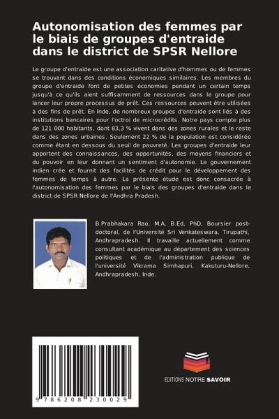 Le groupe d'entraide est une association caritative d'hommes ou de femmes se trouvant dans des conditions économiques similaires. Les membres du groupe d'entraide font de petites économies pendant un certain temps jusqu'à ce qu'ils aient suffisamment de ressources dans le groupe pour lancer leur propre processus de prêt. Ces ressources peuvent être utilisées à des fins de prêt. En Inde, de nombreux groupes d'entraide sont liés à des institutions bancaires pour l'octroi de microcrédits. Notre pays compte plus de 121 000 habitants, dont 83,3 % vivent dans des zones rurales et le reste dans des zones urbaines. Seulement 22 % de la population est considérée comme étant en dessous du seuil de pauvreté. Les groupes d'entraide leur apportent des connaissances, des opportunités, des moyens financiers et du pouvoir en leur donnant un sentiment d'autonomie. Le gouvernement indien crée et fournit des facilités de crédit pour le développement des femmes de temps à autre. La présente étude est donc consacrée à l'autonomisation des femmes par le biais des groupes d'entraide dans le district de SPSR Nellore de l'Andhra Pradesh.