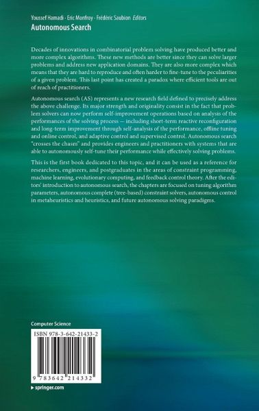 This is the first book dedicated to this topic, and it can be used as a reference for researchers, engineers, and postgraduates in the areas of constraint programming, machine learning, evolutionary computing, and feedback control theory. After the editors' introduction to autonomous search, the chapters are focused on tuning algorithm parameters, autonomous complete (tree-based) constraint solvers, autonomous control in metaheuristics and heuristics, and future autonomous solving paradigms.