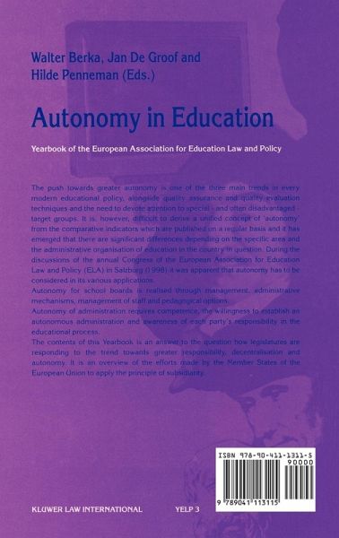 The push towards greater autonomy is one of the three main trends in every modern educational policy, alongside quality assurance and quality evaluation techniques and the need to devote attention to special - and often disadvantaged - target groups. It is, however, difficult to derive a unified concept of `autonomy' from the comparative indicators which are published on a regular basis and it has emerged that there are significant differences depending on the specific area and the administrative organisation of education in the country in question. During the discussions of the annual Congress of the European Association for Education Law and Policy (ELA) in Salzburg (1998) it was apparent that autonomy has to be considered in its various applications.