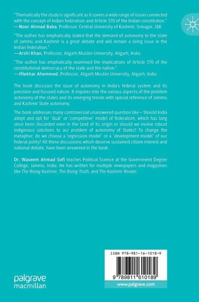 The book discusses the issue of autonomy in India's federal system and its precision and focused nature. It inquires into the various aspects of the problem autonomy of the states and its emerging trends with special reference of Jammu and Kashmir State autonomy.