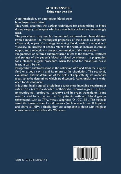 The practice of autologous blood collection and transfusion has been steadily increasing. The concept is not new; however, its application has been limited because of lack of interest and willingness to make the extra effort required. Also there has been concern about the safety of the procedure. Homologous blood transfusion is easy and has allo wed us to salvage lives and perform procedures which would not have been feasible without the availability of whole blood or its components. Transfusion with homologous blood products is safe; however, com plications can and do occur. The transmission of AIDS by transfusion of homologous blood products has significantly increased patient and physician awareness of the dangers one faces. This potential complica tion has promoted autotransfusion. It is now commonly used and reques ted by patients and physicians. Blood for autotransfusion is collected pre or intraoperatively by phle botomy and retrieved intra and post operatively from sites of hemor rhage. Once collected, the blood is either stored or returned to the patient as whole or processed blood. To have a successful autotransfusion program requires anticipation of its needs and coordination and training of involved personel in the blood bank, emergency room, operating room and post-surgical care units. Pre deposit and processing of collected blood requires remission of donor criteria and labeling and storage procedures.
