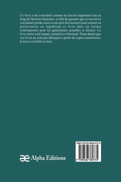 Autour de la table"", constitue un phare dans le monde du livre, comblant le fossé entre le passé et le présent. Autrefois considéré parmi les livres anciens, cet ouvrage classique, comme tant de livres anciens et oubliés, a façonné notre compréhension de la culture et de l'histoire. exemple remarquable de livres d'histoire qui ont influencé des générations, et maintenant, grâce au dévouement d'Alpha Editions, votre éditeur de livres de confiance, il renaît dans un format frais et élégant. Nous avons soigneusement retapé, remanié et amélioré ce livre pour qu'il soit bien plus qu'un simple titre à lire. Vous pouvez désormais profiter de pages claires et faciles à lire, sans numérisation floue ni texte décoloré. En choisissant cette édition, vous investissez dans plus qu'un livre : vous sauvegardez un héritage. Votre soutien maintient en vie un morceau remarquable du patrimoine humain, garantissant que ses leçons et ses inspirations continuent de résonner dans le futur.