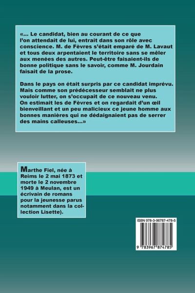 «... Le candidat, bien au courant de ce que l'on attendait de lui, entrait dans son rôle avec conscience. M. de Fèvres s'était emparé de M. Lavaut et tous deux arpentaient le territoire sans se mêler aux menées des autres. Peut-être faisaient-ils de bonne politique sans le savoir, comme M. Jourdain faisait de la prose. Dans le pays on était surpris par ce candidat imprévu. Mais comme son prédécesseur semblait ne plus vouloir lutter, on s'occupait de ce nouveau venu. On estimait les de Fèvres et on regardait d'un œil bienveillant et un peu malicieux ce jeune homme aux bonnes manières qui ne dédaignaient pas de serrer des mains calleuses...»