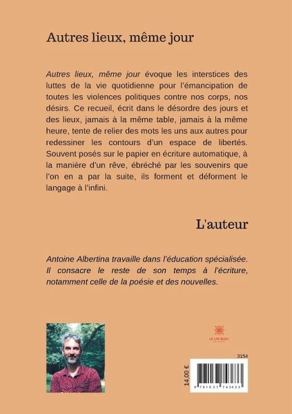 Autres lieux, même jour évoque les interstices des luttes de la vie quotidienne pour l'émancipation de toutes les violences politiques contre nos corps, nos désirs. Ce recueil, écrit dans le désordre des jours et des lieux, jamais à la même table, jamais à la même heure, tente de relier des mots les uns aux autres pour redessiner les contours d'un espace de libertés. Souvent posés sur le papier en écriture automatique, à la manière d'un rêve, ébréché par les souvenirs que l'on en a par la suite, ils forment et déforment le langage à l'infini.