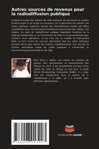 L'objectif principal des stations de radio publiques est de fournir un contenu d'intérêt public et de ne pas se concentrer sur la génération de revenus. Les radios publiques modernes doivent être financièrement viables afin d'être compétitives dans l'environnement hautement concurrentiel des médias. Les stations de radio de radiodiffusion publique dépendent fortement de la publicité traditionnelle ou du financement de l'État ou du gouvernement pour maintenir leurs opérations, ce qui n'est pas un modèle de financement idéal. Le livre couvre les sources alternatives que les radios publiques peuvent utiliser pour obtenir des revenus supplémentaires. Ces sources de revenus alternatives aident les radios publiques à s'émanciper du financement gouvernemental ou de l'État.