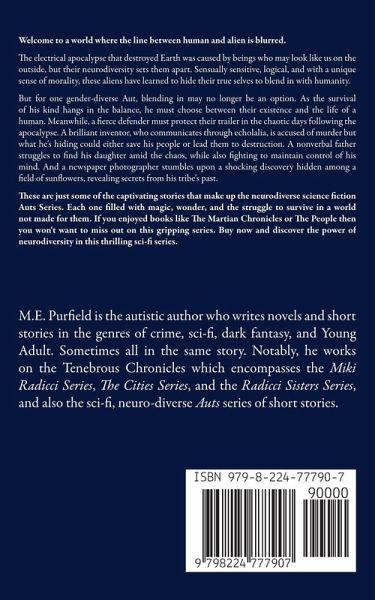 Welcome to a world where the line between human and alien is blurred. The electrical apocalypse that destroyed Earth was caused by beings who may look like us on the outside, but their neurodiversity sets them apart. Sensually sensitive, logical, and with a unique sense of morality, these aliens have learned to hide their true selves to blend in with humanity. But for one gender-diverse Aut, blending in may no longer be an option. As the survival of his kind hangs in the balance, he must choose between their existence and the life of a human. Meanwhile, a fierce defender must protect their trailer in the chaotic days following the apocalypse. A brilliant inventor, who communicates through echolalia, is accused of murder but what he's hiding could either save his people or lead them to destruction. A nonverbal father struggles to find his daughter amid the chaos, while also fighting to maintain control of his mind. And a newspaper photographer stumbles upon a shocking discovery hidden among a field of sunflowers, revealing secrets from his tribe's past. These are just some of the captivating stories that make up the neurodiverse science fiction Auts Series. Each one filled with magic, wonder, and the struggle to survive in a world not made for them. If you enjoyed books like The Martian Chronicles or The People then you won't want to miss out on this gripping series. Buy now and discover the power of neurodiversity in this thrilling sci-fi series.