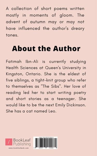 A collection of short poems written mostly in moments of gloom. The advent of autumn may or may not have influenced the author's dreary tones.