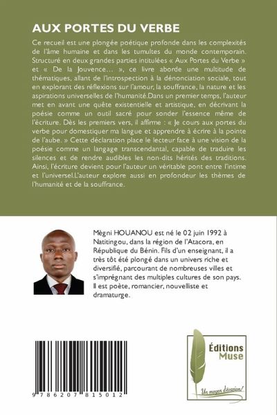 Ce recueil est une plongée poétique profonde dans les complexités de l'âme humaine et dans les tumultes du monde contemporain. Structuré en deux grandes parties intitulées « Aux Portes du Verbe » et « De la Jouvence... », ce livre aborde une multitude de thématiques, allant de l'introspection à la dénonciation sociale, tout en explorant des réflexions sur l'amour, la souffrance, la nature et les aspirations universelles de l'humanité.Dans un premier temps, l'auteur met en avant une quête existentielle et artistique, en décrivant la poésie comme un outil sacré pour sonder l'essence même de l'écriture. Dès les premiers vers, il affirme : « Je cours aux portes du verbe pour domestiquer ma langue et apprendre à écrire à la pointe de l'aube. » Cette déclaration place le lecteur face à une vision de la poésie comme un langage transcendantal, capable de traduire les silences et de rendre audibles les non-dits hérités des traditions. Ainsi, l'écriture devient pour l'auteur un véritable pont entre l'intime et l'universel.L'auteur explore aussi en profondeur les thèmes de l'humanité et de la souffrance.