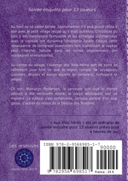 Au fond de sa vallée boisée, Sqonsmenron n'a plus grand chose à voir avec le petit village reculé qu'il était autrefois. L'industrie du bois y est maintenant florissante et les échanges commerciaux avec la capitale ont dynamisé l'économie locale. Depuis cette renaissance, de nombreux aventuriers font maintenant le voyage pour chercher fortune dans les mines abandonnées des montagnes environnantes. Au centre du village, l'Auberge des Trois Héros sert de point de ralliement pour tout ce que la région compte de voyageurs, guerriers, druides et autres experts en serrurerie, horlogerie et pièges. Ce soir, Marcaryn Fiedlerson, la serveuse que tout le monde adorait a été retrouvée morte, le corps déchiqueté par un monstre. La rumeur s'est enflammée, certains parlent d'un loup garou, d'autres du retour de la Déesse des Ténèbres...