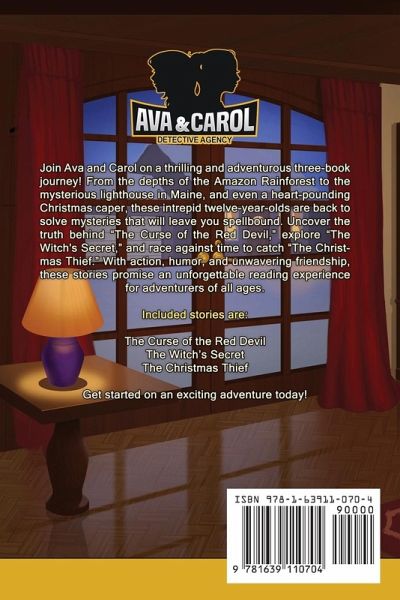 Twelve-year-olds Ava and Carol are back with three captivating mysteries that will keep readers of all ages on the edge of their seats. In "The Curse of the Red Devil," join the trio as they venture into the heart of the Amazon Rainforest in Brazil, where they uncover a legendary myth that hides a sinister truth - poachers with secrets to protect. "The Witch's Secret" takes Ava and Carol to the mysterious city of Tempest, Maine, where they explore the home of a woman labeled a witch. As they dig deeper, they stumble upon clues that reveal the witch's secrets and a lurking danger they must confront. And just in time for the holiday season, in "The Christmas Thief," the trio finds themselves house-sitting with a twist. A burglar disrupts their peaceful stay, sending them on a quest to recover stolen belongings before Christmas Day arrives. With each adventure, Ava and Carol combine their wits, humor, and unbreakable friendship to solve mysteries that will leave you spellbound. Join them as they unravel secrets, outsmart villains, and embark on thrilling escapades in locales ranging from the Amazon Rainforest to cozy Maine, and even a festive holiday setting. Order now and unlock hours of thrilling reading for young and young-at-heart readers alike!