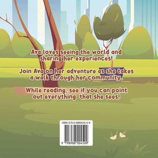 Ava Takes A Walk! Ava loves seeing the world and sharing her experiences! Join Ava on her adventure as she takes a walk through her community. While reading, see if you can point out everything that she sees!