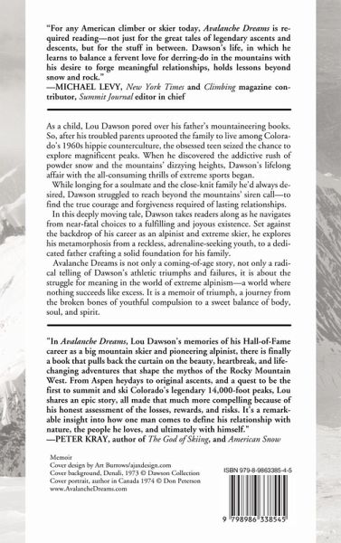 WINNER: 2024 International Ski History Association (ISHA) Baldur Award "Soulful coming-of-age memoir..."-- Seth Masia, president, ISHA "Gripping wallop of adventures, family, and gravity." -- Alex Lee, The-High-Route.com "A book you need to read." -- Cam Burns, Powder.com (Case laminate edition, jacket is laminated to the front and back cover boards.) In his riveting memoir, renowned mountaineer Lou Dawson shares a tumultuous coming-of-age journey, from the flatlands of Texas to the Colorado mountains, steeped in the counterculture revolution of the 1960s. Amidst the towering peaks, Lou discovers an enduring love for alpine sports: scaling cliffs, topping summits, skiing powder snow. However, as the avalanches fall and lifestyle choices veer, his pursuit of adrenaline becomes a poignant struggle for meaning in a culture where nothing succeeds like excess. This deeply moving narrative invites readers to join Lou as he navigates a precarious path toward fulfillment, showcasing his transformation from a reckless, thrill-seeking youth to a devoted father determined to build a stable foundation for his family. Lou Dawson's extraordinary journey, both through the mountains and the recesses of his heart, serves as a timeless exploration of self-discovery and spiritual growth, offering readers a poignant glimpse into the transformative power of the wild, and the indomitable strength found within. Illustrated with 82 classic images. (This is the Ingram case laminate printing, suggested retail $24.95.)