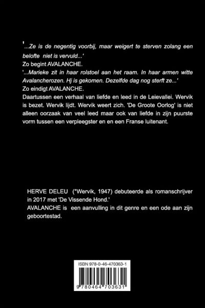 Een verhaal van liefde en leed in de Leievallei. Wervik is bezet, lijdt en weert zich. 'De Groote Oorlog' is niet alleen oorzaak van veel leed maar ook van liefde in zijn puurste vorm tussen een verpleegster en een Franse luitenant.