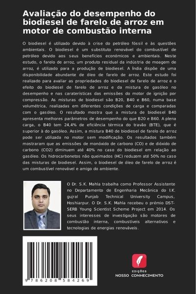 O biodiesel é utilizado devido à crise do petróleo fóssil e às questões ambientais. O biodiesel é um substituto renovável do combustível de petróleo devido aos seus benefícios económicos e ambientais. Neste estudo, o farelo de arroz, um produto residual da indústria de moagem de arroz, é utilizado para a produção de biodiesel. A Índia dispõe de uma disponibilidade abundante de óleo de farelo de arroz. Este estudo foi realizado para avaliar as propriedades do biodiesel de farelo de arroz e o efeito do biodiesel de farelo de arroz e da mistura de gasóleo no desempenho e nas caraterísticas das emissões do motor de ignição por compressão. As misturas de biodiesel são B20, B40 e B60, numa base volumétrica, realizadas em diferentes condições de carga e comparadas com o gasóleo. O resultado mostra que a mistura de biodiesel B40 apresenta melhores parâmetros de desempenho do que B20 e B60. A plena carga, o B40 tem 24,4% de eficiência térmica do travão (BTE), que é superior à do gasóleo. Assim, a mistura B40 de biodiesel de farelo de arroz pode ser utilizada no motor sem modificação. Os resultados também mostraram que as emissões de monóxido de carbono (CO) e de dióxido de carbono (CO2) diminuem até 40% no caso do biodiesel em relação ao gasóleo. Os hidrocarbonetos não queimados (HC) reduzem até 50% no caso das misturas de biodiesel. Assim, o biodiesel de óleo de farelo de arroz é um combustível renovável e amigo do ambiente.