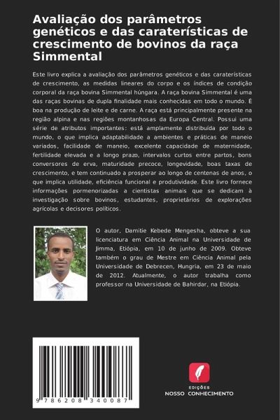 Este livro explica a avaliação dos parâmetros genéticos e das caraterísticas de crescimento, as medidas lineares do corpo e os índices de condição corporal da raça bovina Simmental húngara. A raça bovina Simmental é uma das raças bovinas de dupla finalidade mais conhecidas em todo o mundo. É boa na produção de leite e de carne. A raça está principalmente presente na região alpina e nas regiões montanhosas da Europa Central. Possui uma série de atributos importantes: está amplamente distribuída por todo o mundo, o que implica adaptabilidade a ambientes e práticas de maneio variados, facilidade de maneio, excelente capacidade de maternidade, fertilidade elevada e a longo prazo, intervalos curtos entre partos, bons conversores de erva, maturidade precoce, longevidade, boas taxas de crescimento, e tem continuado a prosperar ao longo de centenas de anos, o que implica utilidade, eficiência funcional e produtividade. Este livro fornece informações pormenorizadas a cientistas animais que se dedicam à investigação sobre bovinos, estudantes, proprietários de explorações agrícolas e decisores políticos.