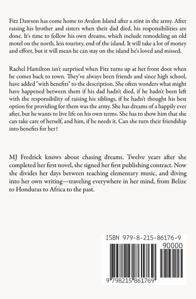 PREVIOUSLY PUBLISHED AS RIGHT BACK TO YOU Fitz Dawson has come home to Avalon Island after a stint in the army. After raising his brother and sisters when their dad died, his responsibilities are done. It's time to follow his own dreams, which include remodeling an old motel on the north, less touristy, end of the island. It will take a lot of money and effort, but it will mean he can stay on the island he's loved and missed. Rachel Hamilton isn't surprised when Fitz turns up at her front door when he comes back to town. They've always been friends and since high school, have added "with benefits" to the description. She often wonders what might have happened between them if his dad hadn't died, if he hadn't been left with the responsibility of raising his siblings, if he hadn't thought his best option for providing for them was the army. She has dreams of a happily ever after, but he wants to live life on his own terms. She has to show him that she can take care of herself, and him, if he needs it. Can she turn their friendship into benefits for her?