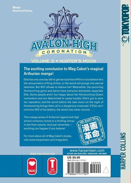 The exciting conclusion to Meg Cabot's magical Arthurian manga! Ellie has only one day left to get her boyfriend Will to truly believe he's the reincarnation of King Arthur, or the world will plunge into eternal darkness. But Will refuses to believe her! Meanwhile, the upcoming Homecoming game and dance have everyone distracted, especially Ellie. Some people aren't too happy about her Homecoming Queen nomination and are determined to cause trouble. Ellie's got to save her reputation and the world before the new moon on the night of Homecoming brings them all to a dangerous crossroad. If Ellie can't convince Will of his destiny, the world may never recover. . . . This manga series of Arthurian legend and high school romance comes to a thrilling climax in this final volume. And just remember--anything can happen if you believe!