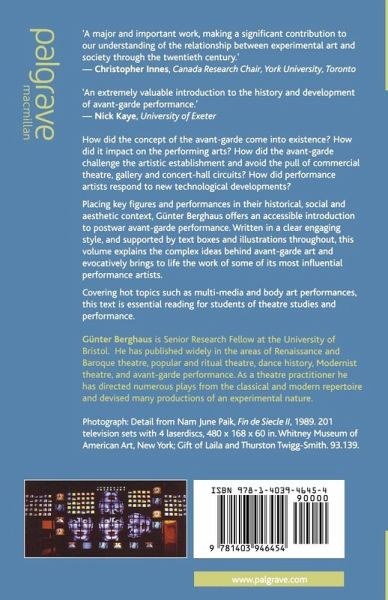 Placing key figures and performances in their historical, social and aesthetic context, Günter Berghaus offers an accessible introduction to post-war avant-garde performance. Written in a clear, engaging style, and supported by text boxes and illustrations throughout, this volume explains the complex ideas behind avant-garde art and evocatively brings to life the work of some of its most influential performance artists.