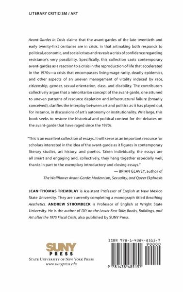 Jean-Thomas Tremblay is Assistant Professor of English at New Mexico State University. They are currently completing a monograph titled Breathing Aesthetics. Andrew Strombeck is Professor of English at Wright State University. He is the author of DIY on the Lower East Side: Books, Buildings, and Art after the 1975 Fiscal Crisis, also published by SUNY Press.