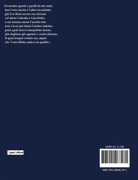 Or mentre questi e quelli in tale stato han l¿uno stuolo e l¿altro ricondotto, già il re Rion securo era arrivato col miser Galealto a Lancilotto; a cui nessun narrar l¿acerbo fato non s¿avea per timor l¿animo indotto; però, qual nuovo inaspettato danno, più doglioso gli apporta e crudo affanno. Il qual sempre restato era, dapoi che ¿l suo diletto amico era partito....