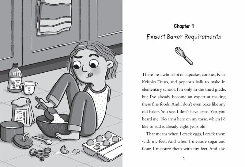 Third-grader Aven Green has been baking for a really long time . . . since last week! Now Aven is ready to shake things up by entering the exciting world of competitive baking with her friends Kayla, Sujata, and Emily. Aven knows she’s an expert baker. So what if she doesn’t have arms? That’s just the way she was born. And honestly, she’s a whiz at mixing and measuring with her feet. The one skill Aven hasn’t mastered in the kitchen: working together with her friends. Before long they are fighting over whose dessert is the best. Will adding friends to the mix turn into a recipe for disaster for Aven?