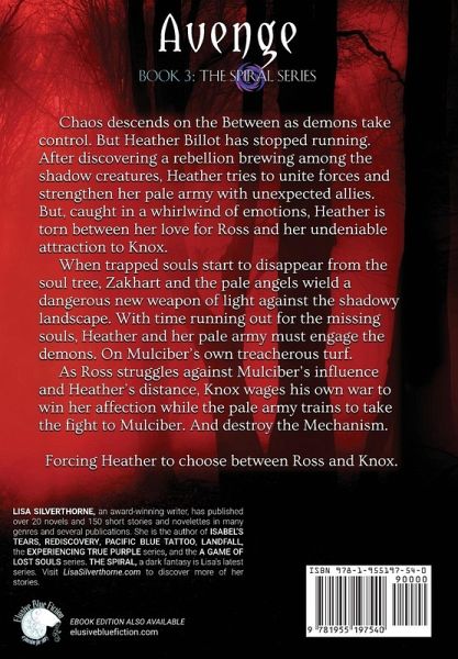 Chaos descends on the Between as demons take control. But Heather Billot has stopped running. After discovering a rebellion brewing among the shadow creatures, Heather tries to unite forces and strengthen her pale army with unexpected allies. But, caught in a whirlwind of emotions, Heather is torn between her love for Ross and her undeniable attraction to Knox. When trapped souls start to disappear from the soul tree, Zakhart and the pale angels wield a dangerous new weapon of light against the shadowy landscape. With time running out for the missing souls, Heather and her pale army must engage the demons. On Mulciber's own treacherous turf. As Ross struggles against Mulciber's influence and Heather's distance, Knox wages his own war to win her affection while the pale army trains to take the fight to Mulciber. And destroy the Mechanism. Forcing Heather to choose between Ross and Knox. Avenge is the third book in The Spiral, an epic dark fantasy tale of love, sacrifice, and redemption. Prepare for a tense journey through shadows as the fate of the Between hangs in the balance and the destinies of its inhabitants intertwine in ways they never imagined as they fight to reach the Spiral.