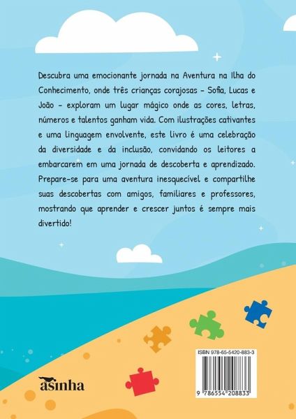 Descubra uma emocionante jornada na "Aventura na ilha do conhecimento", onde três crianças corajosas - Sofia, Lucas e João - exploram um lugar mágico onde as cores, letras, números e talentos ganham vida. Com ilustrações cativantes e uma linguagem envolvente, este livro é uma celebração da diversidade e da inclusão, convidando os leitores a embarcarem em uma jornada de descoberta e aprendizado. Prepare-se para uma aventura inesquecível e compartilhe suas descobertas com amigos, familiares e professores, mostrando que aprender e crescer juntos é sempre mais divertido!
