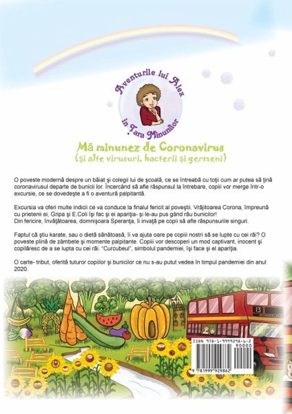 O poveste despre legatura dintre bunici si nepoti in timpul pandemiei. Alex si prietenii lui se intreaba cum sa ii tina pe bunici departe de virusul ce a oprit un mapamond intreg din mersul normal. Alex va pleca intr-o excursie cu toata clasa, la capatul careia ii asteapta bunicii. O aventura palpitanta, in care Domnisoara Speranta, invatatoarea, este cea ce ii va ajuta pe copii cand se vor afla in incurcatura. Vrajitoarea Corona, Gripaliciu si E.Coli isi vor face si ei aparitia. Vor reusi, Alex si prietenii lui, sa afle raspunsul la intrebare? O poveste palpitanta, emotionanta, despre legatura indestructibila dintre nepoti si bunici. O poveste cu un final fericit in care copiii nu folosesc violenta, ci u mod copilaresc, dulce si inocent de a iesi victorisoi. UN final fericit pentru ca, asa cum Alex declara la sfarsitul povestii, "in povesti si in viata reala, cei buni castiga intotdeauna!". O poveste in care curcubeul isi va face si el aparitia ca invitat de onoare.