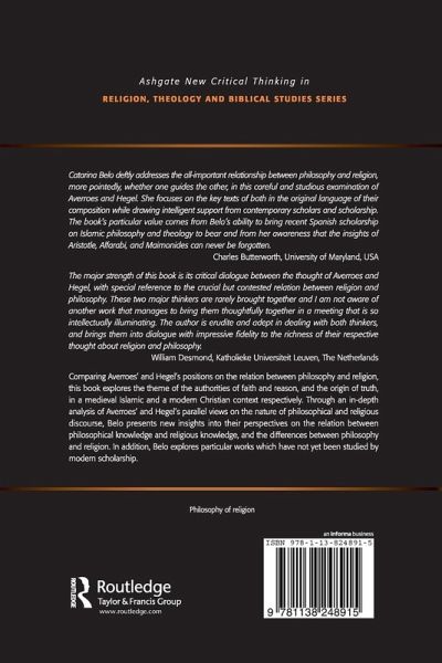 Comparing Averroes' and Hegel's positions on the relation between philosophy and religion, this book explores the relation between faith and reason in a medieval Islamic and a modern Christian context. Through an in-depth analysis of Averroes' and Hegel's views on philosophical and religious language and method, Belo presents new insights into their perspectives on the relation between philosophical knowledge and religious knowledge. In addition to discussing the parallels and differences of their positions, Belo explores particular works which have not yet been analysed by modern scholarship.