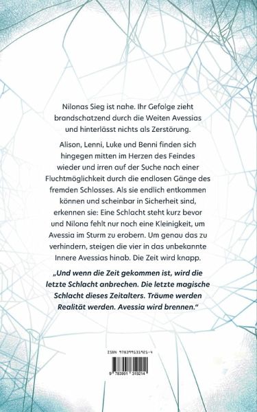 Nilonas Sieg ist nahe. Ihr Gefolge zieht brandschatzend durch die Weiten Avessias und hinterlässt nichts als Zerstörung. Alison, Lenni, Luke und Benni finden sich hingegen mitten im Herzen des Feindes wieder und irren auf der Suche nach einer Fluchtmöglichkeit durch die endlosen Gänge des fremden Schlosses. Als sie endlich entkommen können und scheinbar in Sicherheit sind, erkennen sie: Eine Schlacht steht kurz bevor und Nilona fehlt nur noch eine Kleinigkeit, um Avessia im Sturm zu erobern. Um genau das zu verhindern, steigen die vier in das unbekannte Innere Avessias hinab. Die Zeit wird knapp."Und wenn die Zeit gekommen ist, wird die letzte Schlacht anbrechen. Die letzte magische Schlacht dieses Zeitalters. Träume werden Realität werden. Avessia wird brennen."