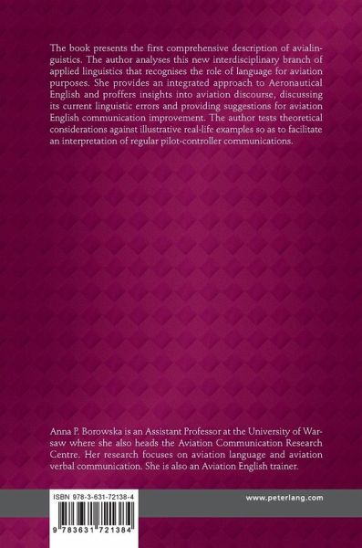 The book presents the first comprehensive description of avialinguistics. The author analyses this new interdisciplinary branch of applied linguistics that recognises the role of language for aviation purposes. She provides an integrated approach to Aeronautical English and proffers insights into aviation discourse, discussing its current linguistic errors and providing suggestions for aviation English communication improvement. The author tests theoretical considerations against illustrative real-life examples so as to facilitate an interpretation of regular pilot-controller communications.