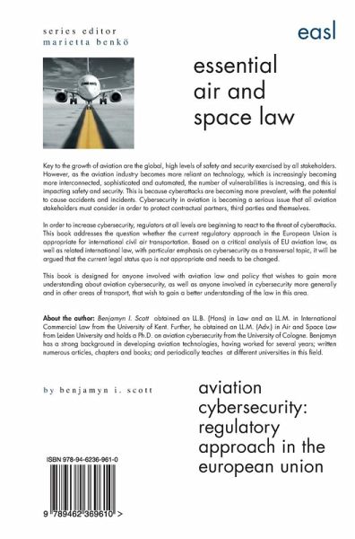 Key to the growth of aviation are the global, high levels of safety and security exercised by all stakeholders. However, as the aviation industry becomes more reliant on technology, which is increasingly becoming more interconnected, sophisticated and automated, the number of vulnerabilities is increasing, and this is impacting safety and security. This is because cyberattacks are becoming more prevalent, with the potential to cause accidents and incidents. Cybersecurity in aviation is becoming a serious issue that all aviation stakeholders must consider in order to protect contractual partners, third parties and themselves. In order to increase cybersecurity, regulators at all levels are beginning to react to the threat of cyberattacks. This book addresses the question whether the current regulatory approach in the European Union is appropriate for international civil air transportation. Based on a critical analysis of EU aviation law, as well as related international law, with particular emphasis on cybersecurity as a transversal topic, it will be argued that the current legal status quo is not appropriate and needs to be changed. This book is designed for anyone involved with aviation law and policy that wishes to gain more understanding about aviation cybersecurity, as well as anyone involved in cybersecurity more generally and in other areas of transport, that wish to gain a better understanding of the law in this area