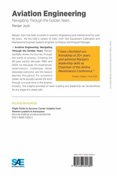 Marijan Jozic has been involved in avionics engineering and maintenance for over 40 years. He has held a variety of roles, from Test Equipment Calibration and Maintenance Engineer, Systems Engineer, to Product and Program Manager. In Aviation Engineering: Navigating Through the Golden Years, Marijan candidly shares his journey through the world of avionics. Covering the 40-year period between 1980 and 2020, he discusses his experiences, observations, challenges faced, obstacles overcome, and the lessons learned throughout his successful career, as he proudly carried the torch through a crucial time in the aviation industry. The insights provided on team building and leadership can be beneficial for any stage of a career path. "Who else could be most qualified to write a book about the golden years of aviation than Marijan Jozic? From the bowels of electromechanical instrumentation to the latest flight management computers, from the 'steam gauges' to LCD and Head Up displays, Marijan has seen, designed and managed their implementation. Thus then, who best to lead you in a journey through those golden years." Randolph Johnstone PhD, Former Boeing Associate Technical Fellow