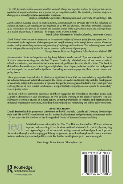 Aviation Markets: Studies in Competition and Regulatory Reform is a collection of 17 papers selected from David Starkie's extensive writings over the last 25 years. Previously published material has been extensively edited and adapted, and combined with new material, published here for the first time. The book is divided into five sections, each featuring an original overview chapter, to better establish the background and also explain the papers' wider significance including, wherever appropriate, their relevance to current policy issues. These papers have been selected to illustrate a significant theme that has been relatively neglected thus far in both aviation and industrial economics: the role of the market and its interplay with the development of economic policy in the context of a dynamic but partly price regulated industry. The result provides a strong flavour of how market mechanisms, and particularly competition, can operate to successfully resolve policy issues. The book will be of interest to academics and those engaged in the formulation of aviation policy, such as public administrators and consultants, as well as those working in the aviation industry. It is also relevant to economic studies in a more general context, particularly to students and practitioners in industrial organisation economics, including those studying and researching the public utility industries.