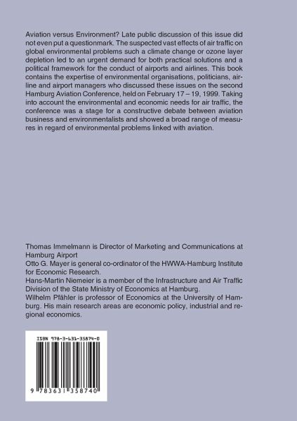 The Editors: Thomas Immelmann is Director of Marketing and Communications at Hamburg Airport. Otto G. Mayer is general co-ordinator of the HWWA-Hamburg Institute for Economic Research. Hans-Martin Niemeier is a member of the Infrastructure and Air Traffic Division of the State Ministry of Economics at Hamburg. Wilhelm Pfähler is professor of Economics at the University of Hamburg. His main research areas are economic policy, industrial and regional economics.