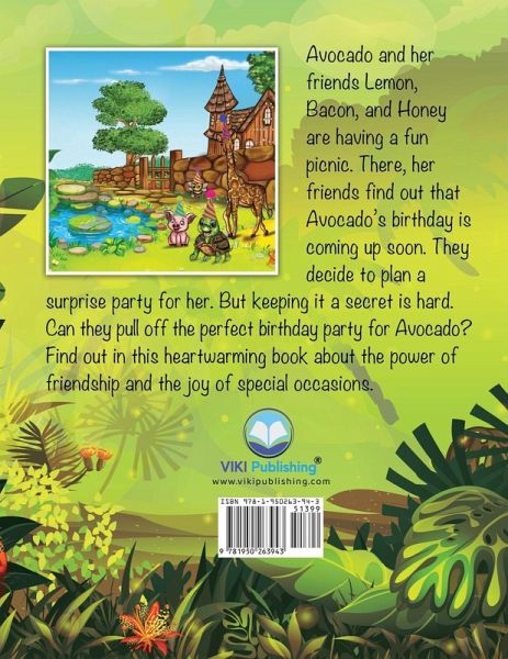 Avocado and her friends Lemon, Bacon, and Honey are having a fun picnic. There, her friends find out that Avocado's birthday is coming up soon. They decide to plan a surprise party for her. But keeping it a secret is hard. Can they pull off the perfect birthday party for Avocado? Find out in this heartwarming book about the power of friendship and the joy of special occasions. "True friendship brings joyfulness to one's life." -Kiara Shankar & Vinay Shankar ------- About the Authors: Kiara Shankar is a talented sixteen-year-old author and songwriter from San Francisco, California, USA. In addition to writing, she enjoys reading and creating artwork. Her recent book, Avocado the Turtle, has been translated into fifteen languages, including Spanish, German, Italian, French, traditional Chinese, simplified Chinese, Hebrew, Hindi, Tamil, Bengali, Kannada, Ukrainian, and more. Vinay Shankar is a software professional who was inspired by his daughter's passion for writing and songwriting and decided to collaborate with her. Together, their creative efforts have given life to great ideas! The father-daughter duo's pop hits, sung by Marla Malvins, Primrose Fernetise, Francesca Shankar, Vin Cooper, and SpotZ the Frenchie, are now available for streaming on popular platforms such as Spotify, Apple Music, YouTube Music, Amazon Music, Deezer, and more.