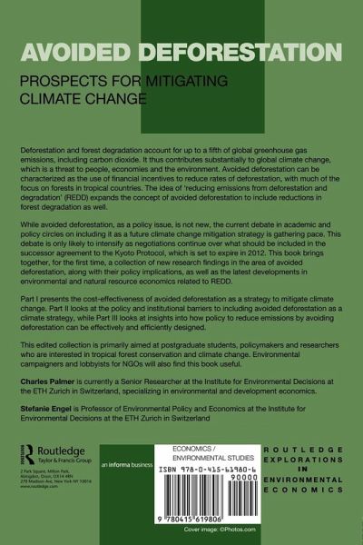 Avoided deforestation can be characterized as the use of financial incentives to reduce rates of deforestation and forest degradation, with much of the focus on forests in tropical countries. While avoided deforestation, as a policy issue, is not new, the current debate in academic and policy circles on including it in future climate change mitigation strategies such as the Clean Development Mechanism is gathering pace - and this debate is only likely to intensify as negotiations continue over what should be included in the successor agreement to the Kyoto Protocol, which is set to expire in 2012. Up until now, however, the debate in terms of the scientific and economic implications of avoided deforestation has not been brought together. This book aims to bring together important research findings in the area along with their policy implications, whilst linking avoided deforestation to political economy as well as to the latest developments in environmental and natural resource economics.