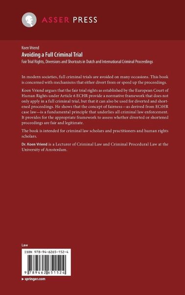 Koen Vriend argues that the fair trial rights as established by the European Court of Human Rights under Article 6 ECHR provide a normative framework that does not only apply in a full criminal trial, but that it can also be used for diverted and shortened proceedings. He shows that the concept of fairness-as derived from ECtHR case law-is a fundamental principle that underlies all criminal law enforcement. It provides for the appropriate framework to assess whether diverted or shortened proceedings are fair and legitimate.