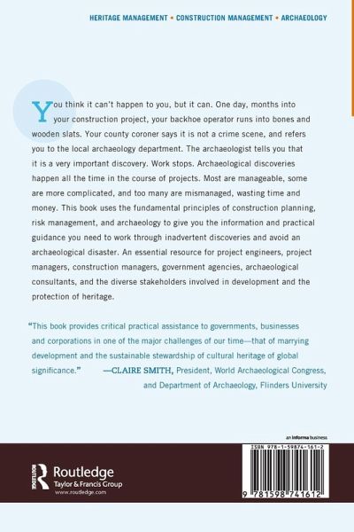 You think it can't happen to you, but it can. One day, months into your construction project, your front end load operator runs into bones and wooden slats. Your county coroner says it is not a crime scene, and refers you to the local archaeology department. The archaeologist tells you that it is a very important discovery. Work stops. Archaeological discoveries happen all the time in the course of projects. Most are manageable, some are less so, and some are mismanaged, wasting time and money. If you are not prepared, the consequences can be disastrous. This book is for project engineers, project managers, construction managers, the staff of affected government agencies, and archaeological consultants. In its pages you receive enough information, enough archaeological perspective, to intelligently work with the various parties involved in your project and avoid an archaeological disaster.