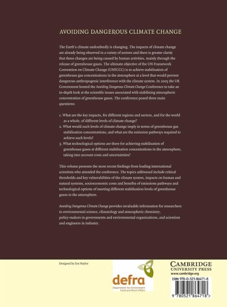 The impacts of climate change are already being observed in a variety of sectors and there is greater clarity that these changes are being caused by human activities, mainly through release of greenhouse gases. In 2005 the UK Government hosted the Avoiding Dangerous Climate Change conference to take an in-depth look at the scientific issues associated with climate change. This volume presents findings from the leading international scientists that attended the conference. The topics addressed include critical thresholds and key vulnerabilities of the climate system, impacts on human and natural systems, socioeconomic costs and benefits of emissions pathways, and technological options for meeting different stabilisation levels of greenhouse gases in the atmosphere. The volume provides invaluable information for researchers in environmental science, climatology, and atmospheric chemistry, policy-makers in governments and environmental organizations, and scientists and engineers in industry.