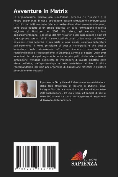 Le argomentazioni relative alla simulazione, secondo cui l'universo e la nostra esperienza di esso potrebbero essere simulazioni computerizzate costruite da civiltà avanzate (aliene o nostre discendenti umane/postumane), sono state oggetto di un ampio dibattito sin dalla formulazione filosofica originale di Bostrom nel 2003. Da allora, gli elementi chiave dell'argomentazione - sostenuti dal film ¿Matrix¿ e dai suoi sequel e spin-off che coprono scenari simili - sono stati discussi criticamente da filosofi, psicologi, critici letterari e scienziati, e oggi esiste un'ampia letteratura sull'argomento. Il tema principale di questa monografia è che questa letteratura sulla simulazione offre un immenso potenziale per l'apprendimento e l'insegnamento in un'ampia gamma di settori. Dopo aver esaminato le principali argomentazioni e le principali critiche alle ipotesi di simulazione, vengono esaminate le implicazioni di questo dibattito nelle sfere dell'etica, dell'epistemologia e della metafisica, al fine di offrire raccomandazioni pratiche per argomenti di discussione filosofica e didattica potenzialmente fruttuosi.