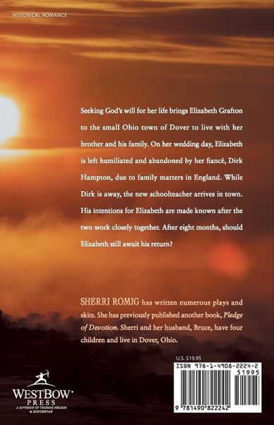 Seeking God's will for her life brings Elizabeth Grafton to the small Ohio town of Dover to live with her brother and his family. On her wedding day, Elizabeth is left humiliated and abandoned by her fiancé, Dirk Hampton, due to family matters in England. While Dirk is away, the new schoolteacher arrives in town. His intentions for Elizabeth are made known after the two work closely together. After eight months, should Elizabeth still await his return?